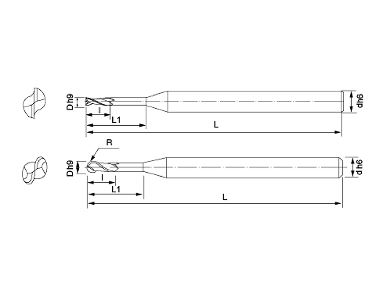 | 產(chǎn)品編號(hào) Item code | R | 有效長(zhǎng)(L1) | 刃長(zhǎng)(I) | 柄徑(d h6) | 全長(zhǎng)(L) |