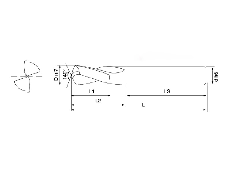| 產(chǎn)品編號(hào) Item code | 刃徑(D m7) | 柄徑(d h6) | 全長(zhǎng)(L) | 刃長(zhǎng)(L2) | 有效刃長(zhǎng)(L1) | 柄長(zhǎng)(LS) |