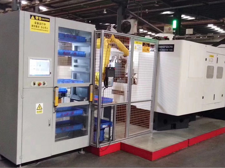 該回轉(zhuǎn)式制造單元是一個(gè)智能制造單元,從毛坯至加工、到裝配、到檢測(cè)、到成品裝配一次完成。該智能制造單元包括主體倉(cāng)庫(kù)、機(jī)器人,CCD自動(dòng)識(shí)別、智能加工、智能裝配、智能測(cè)量、智能監(jiān)控。不合格零件自動(dòng)剔除、合格自動(dòng)裝箱等功能。數(shù)據(jù)收集與處理包括開(kāi)機(jī)時(shí)間記錄,操作供信息,設(shè)備開(kāi)功率,產(chǎn)品數(shù)量,合格率等相關(guān)數(shù)據(jù)的統(tǒng)計(jì)與分析,完全實(shí)現(xiàn)無(wú)人化生產(chǎn)。
